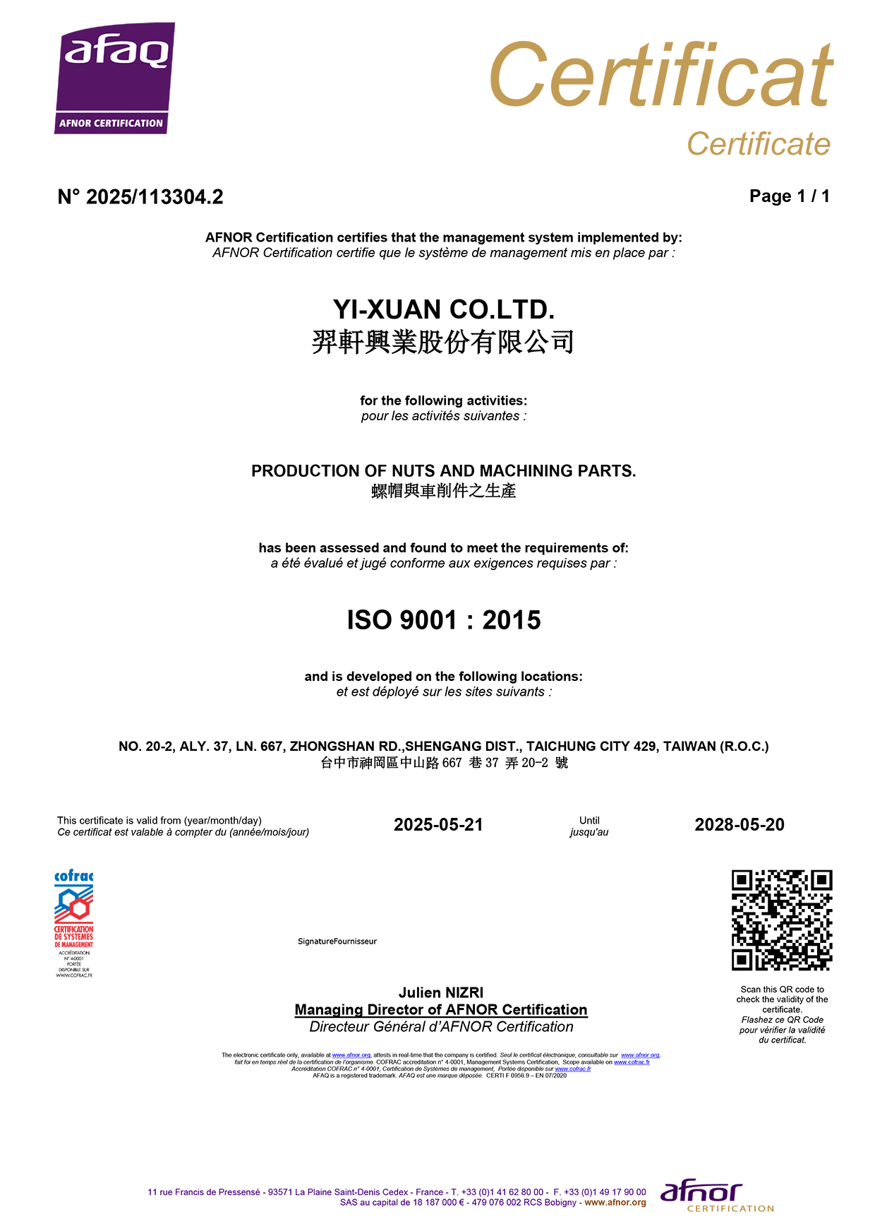 Yi-Xuan Co., Ltd. have insisted on our honesty in trading and high quality. Regarding the urge to continuously innovate, we acquire various precision machines to ensure the enhancement of the quality of our products and the improvement of our techniques.